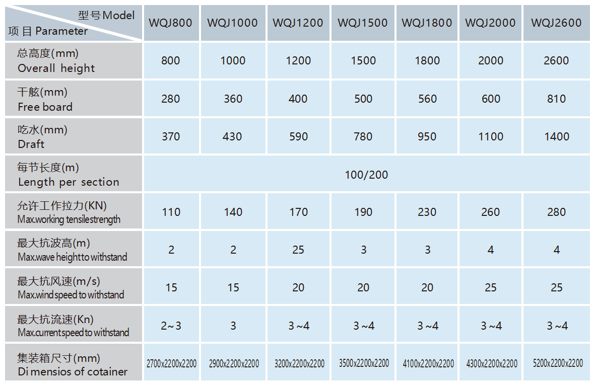 主要配套设备有 :动力站 、 充吸气机 、 拖头 、 卷绕架和集装 箱 。 广泛应用于开阔海域 、 港湾 、 码头 、 河流 、 海洋石油平台和船舶抢险等溢油水域 。